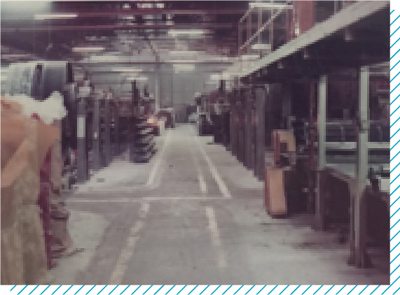 昭和29年、東北振興ゴムを吸収合併。タイヤ、チューブ、ゴム靴、合羽、手袋の生産を継承。技術の進歩とともに多角的操業を実施し、総合ゴム会社となる。写真は昭和30年代のベルト工場。