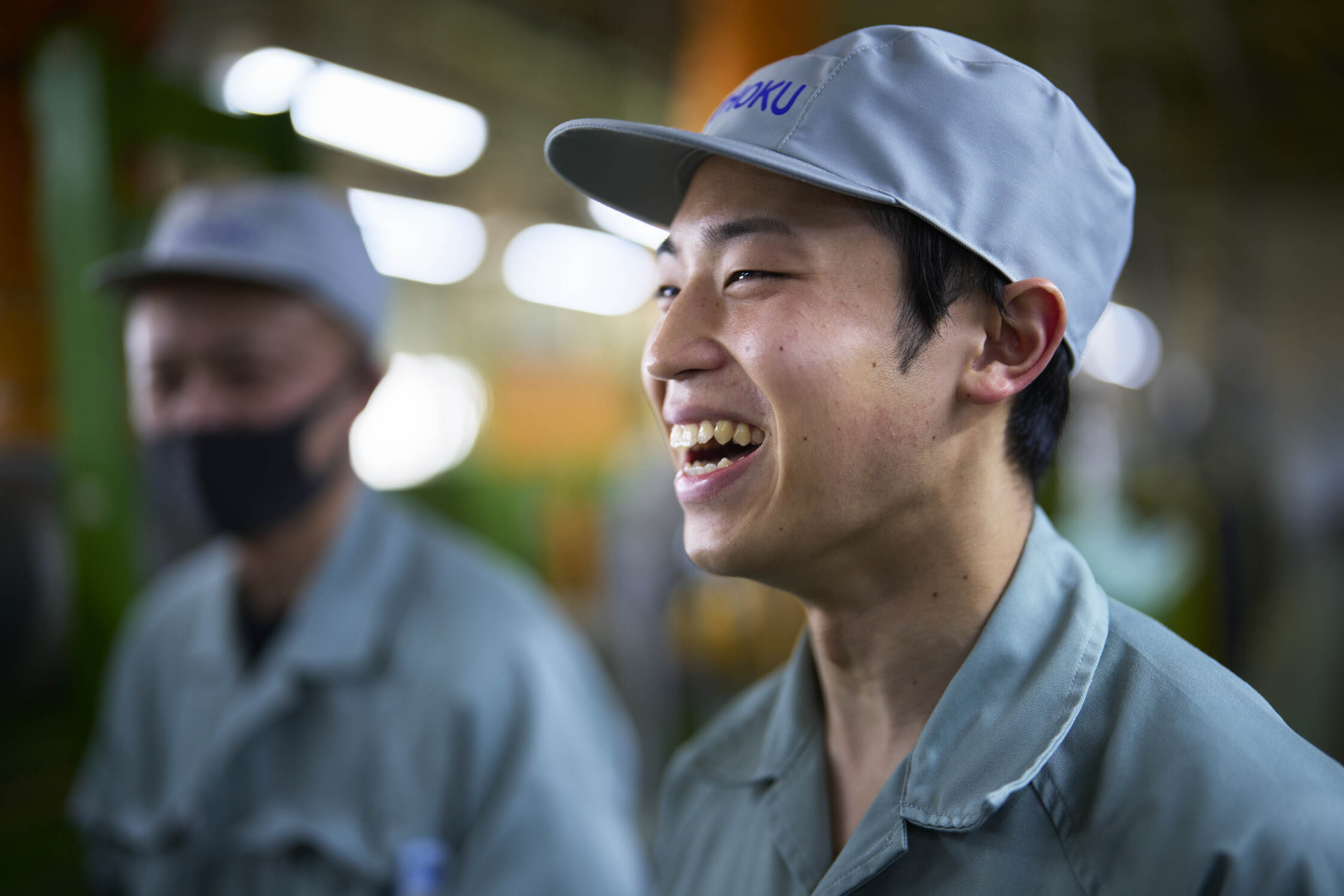 宮城県出身。工業高校では主に「金属加工」を勉強していたので、未知の素材だった「ゴム」に魅力を感じて入社を決定。休日は動画や漫画、ゲームをしたり、友人と映画や買い物を楽しむことも。冬はスノボでリフレッシュ。